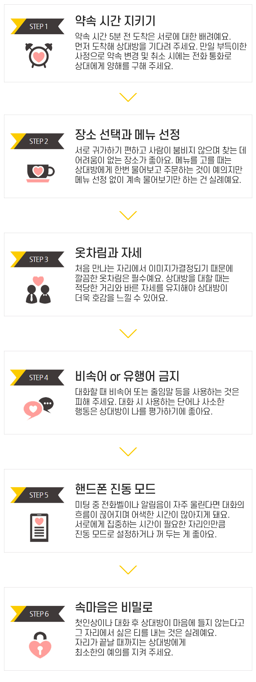 - 선택정보 : 신장, 체중, 혈액형, 학력, 직장, 흡연, 음주, 종교, 상대희망조건 등