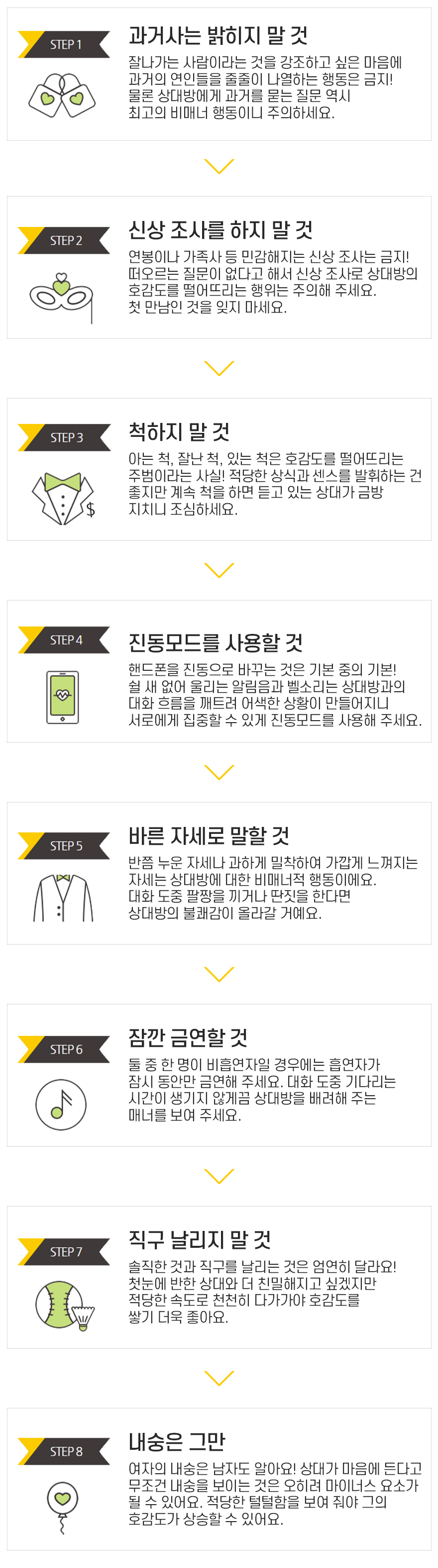 - 선택정보 : 신장, 체중, 혈액형, 학력, 직장, 흡연, 음주, 종교, 상대희망조건 등